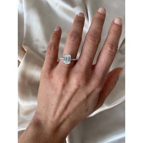 Emerald shaped Hidden halo ring , TW 3.3 ct, UPID 1086