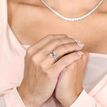 A hidden halo sits below the center stone, which gives the ring a special sparkly detail. Crafted in a gold setting.