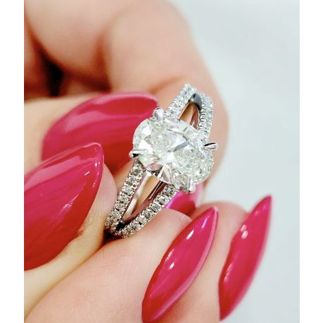Oval shaped Solitaire pave ring , TW 1.51 ct, UPID 1708